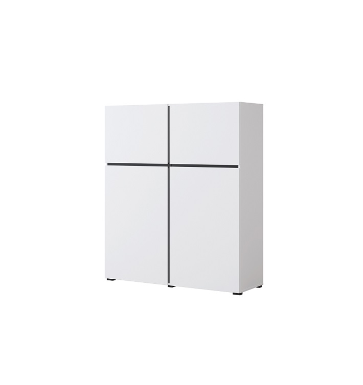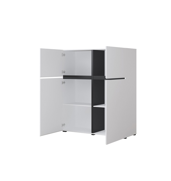 Komoda Cross 4D obsahuje štyri dvierka, vo vnútri sú poličky.