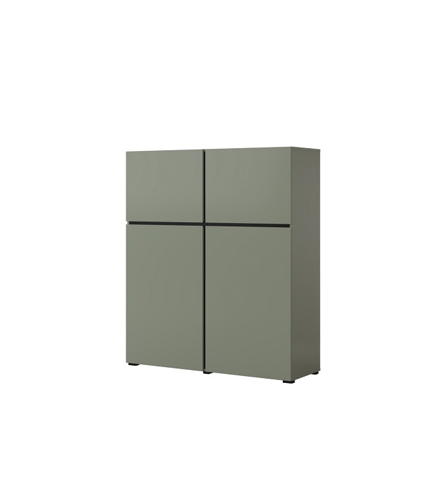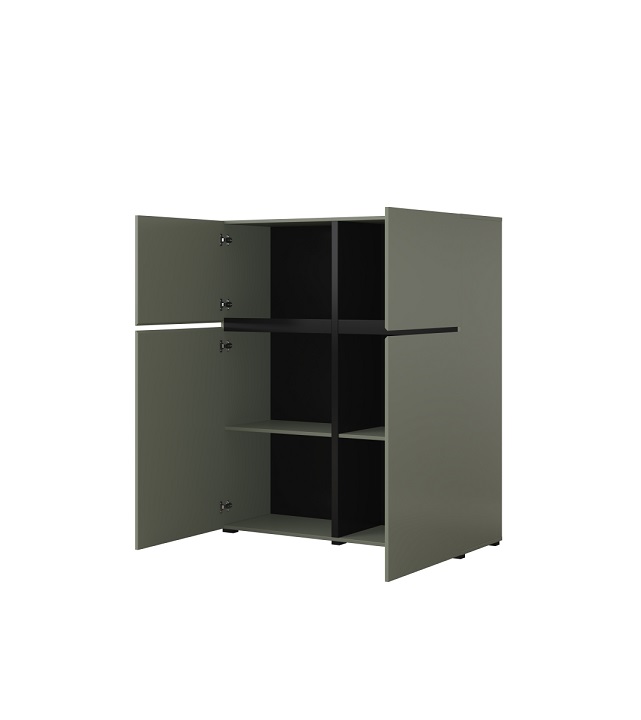Komoda Cross 4D obsahuje štyri dvierka, vo vnútri sú poličky.