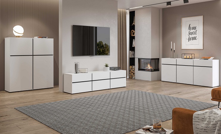 Moderný sektorový nábytok Cross v minimalistickom štýle dostupný vo farebnom prevedení: biela/čierna, borovica zelená/čierna, dub wotan/čierna, congo/čierna a dub wotan/biela. Moderné bezúchytkové otváranie, jednoduchý dizajn, hladké dvierka a veľa úložného priestoru sú typické pre túto kolekciu. Široký výber sektorových prvkov vám umožní hravo zariadiť obývačku, spálňu, alebo predsieň.