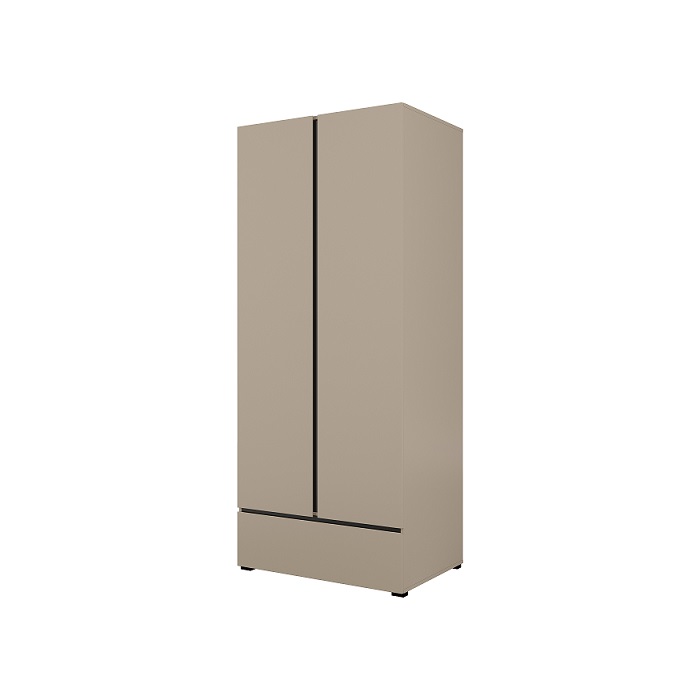 Skriňa šatníková 2-dverová Cross obsahuje jednu zásuvku a dve dvierka, vo vnútri je polička a vešiaková tyč.