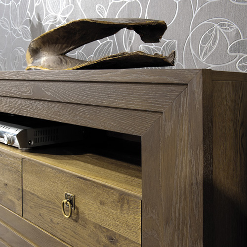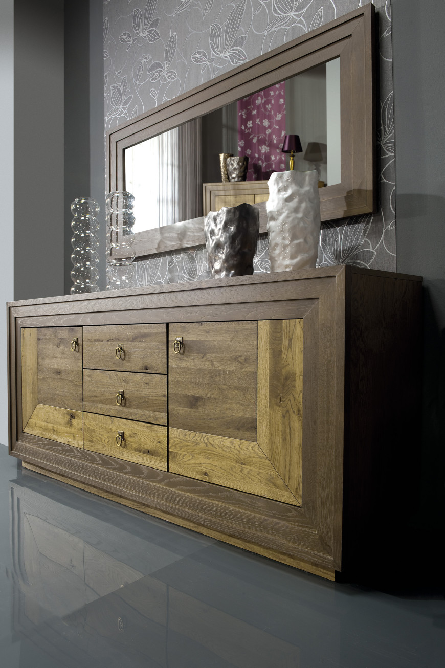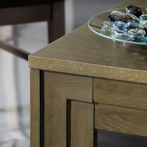 Asketický tvar nábytku vyzdvihuje prirodzenú krásu ručne vyberaného dubového dreva. Jednoduchá forma obohatená o dekoratívny prvok zo stupňovitého rámu pri všetkých prvkoch. Stôl sa stoličkami je jedinečný prvok ktorý doplňuje túto kolekciu.
