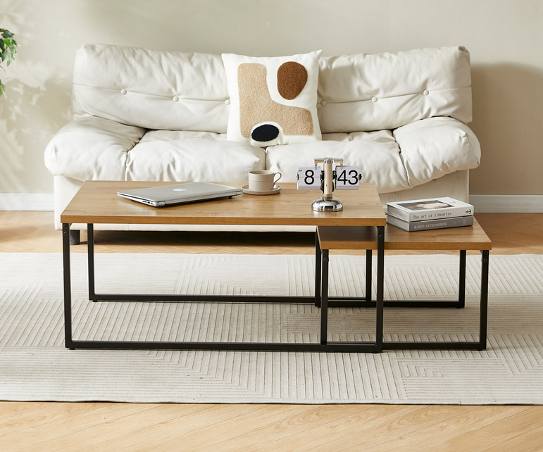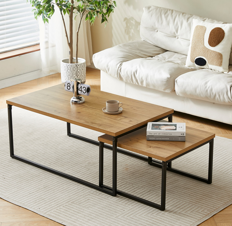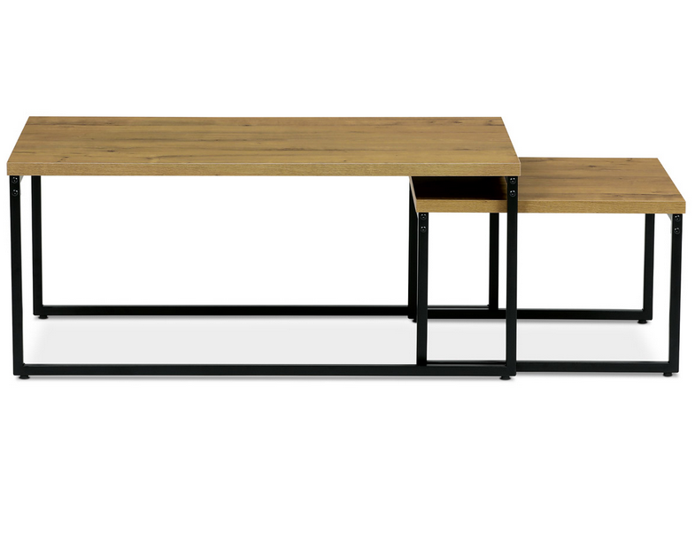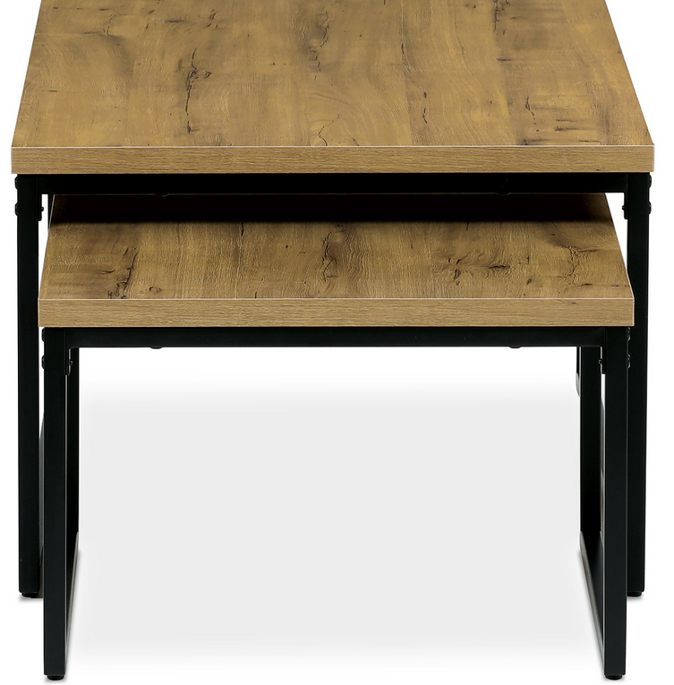 Set dvoch konferenčných stolíkov CT-619 OAK vo farbe divoký dub a s čiernou kovovou podnožou. Materiál: MDF+kov, farebné prevedenie: divoký dub/čierna
