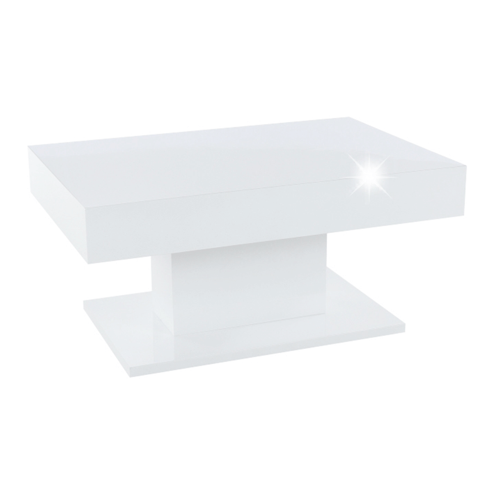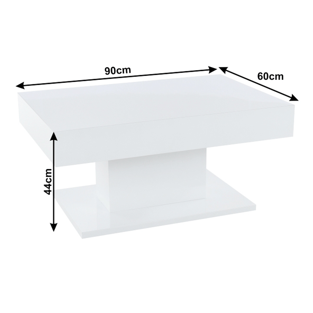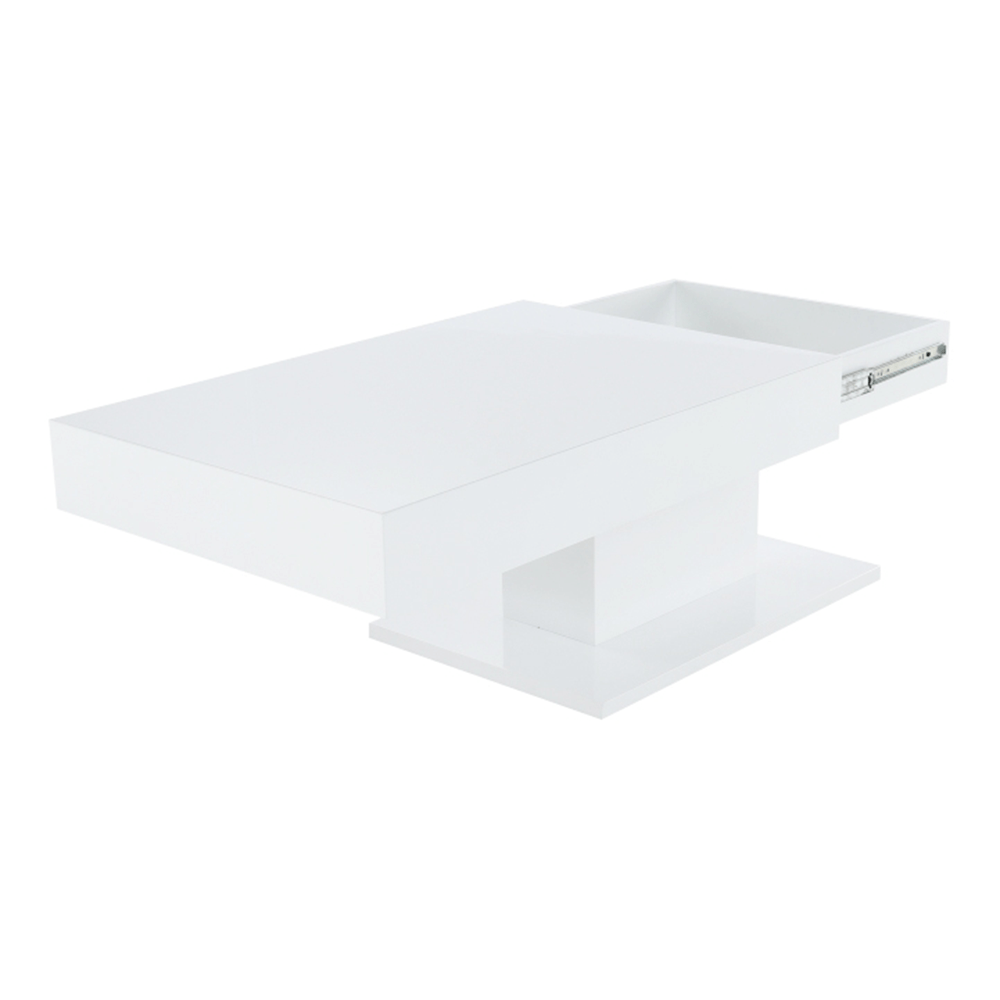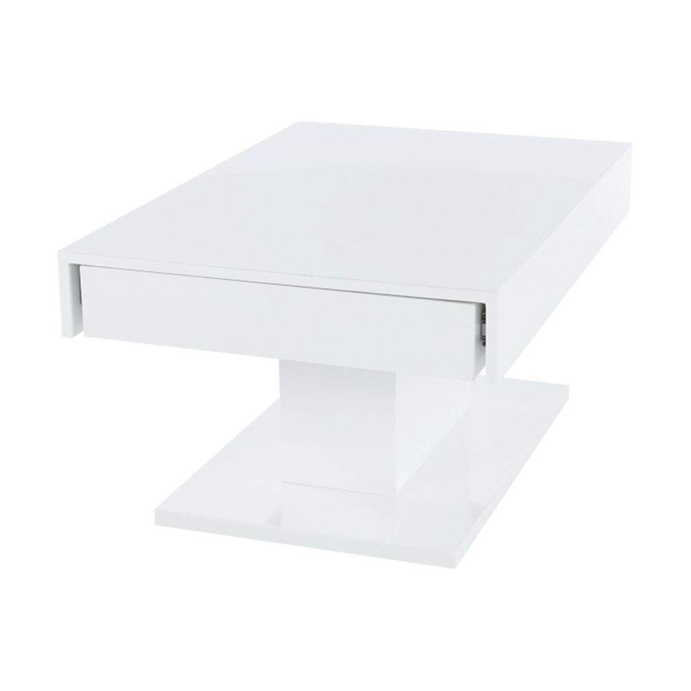 Dizajnový konferenčný stolík Dikaro vo farbe biely lesk so zásuvkou, ktorá slúži ako úložný priestor. Materiál: MDF, farebné prevedenie: biela extra vysoký lesk
