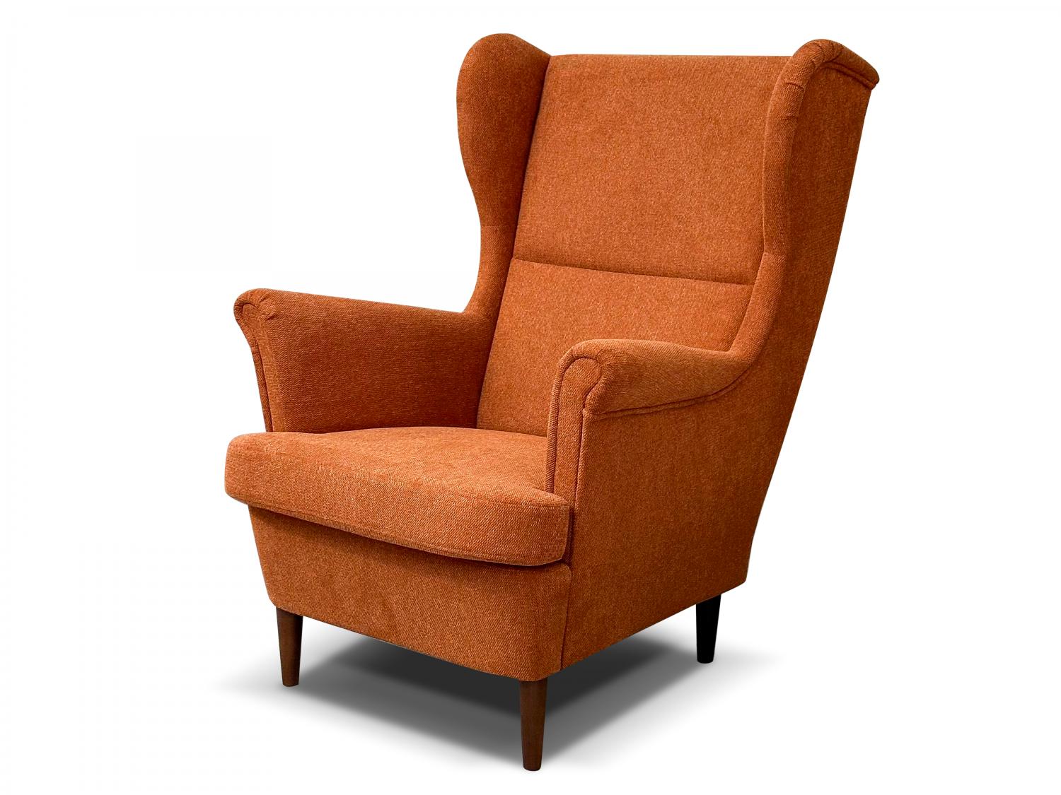 Moderné ušiakové kreslo Nordic s masívnymi drevenými nožičkami. Ku kreslu je možné samostatne dokúpiť taburetku s rovnakom dizajne. Možnosť výberu farebného prevedenia nožičiek-buk, orech, wenge, jelša a biela.