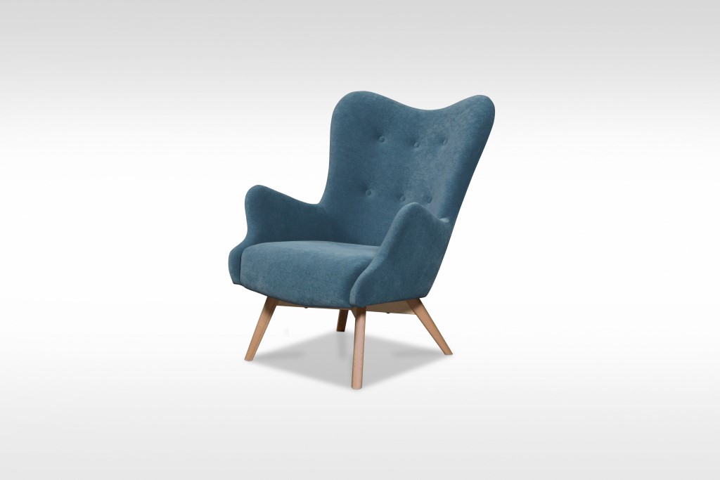 Moderné dizajnové kreslo Oslo s masívnymi drevenými nožičkami. Ku kreslu je možné samostatne dokúpiť taburetku s rovnakom dizajne. Možnosť výberu farebného prevedenia nožičiek-buk, orech, wenge, jelša a biela.