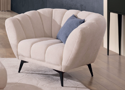 Elegantná kolekcia Valetti s moderným dizajnovým prešívaním pozostáva z dvoch pohoviek, kresla a taburetky. Kolekcia má kovové nožičky v čiernej farbe, výška nožičiek je 19 cm.