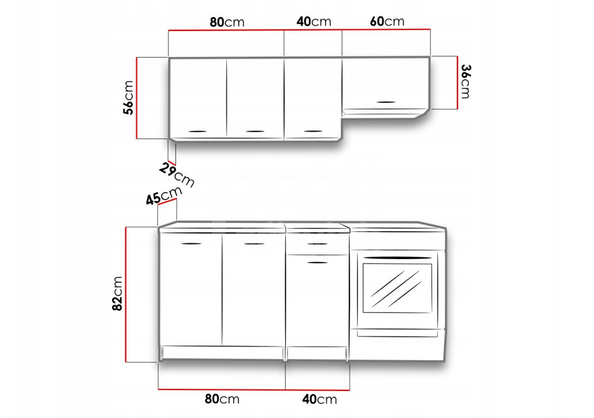 • RozmeryHorné skrinky: 180 cm (dĺžka)