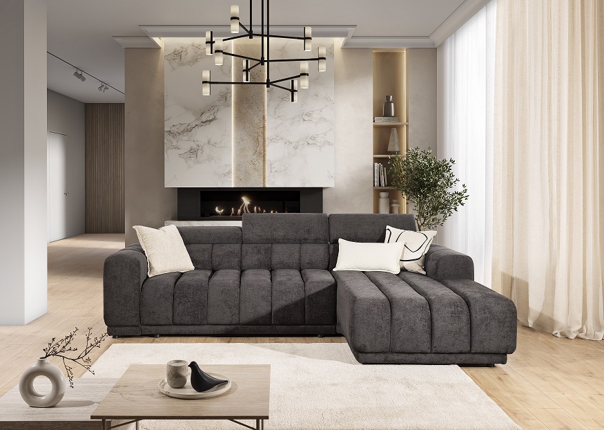 Sektorová časť Augusto - trojsed s  bokom s funkciou rozkladu na spanie. Modul obsahuje topper v rozmere 200 x 145 cm, ktorý vám poskytne väčšie pohodlie pri spánku.