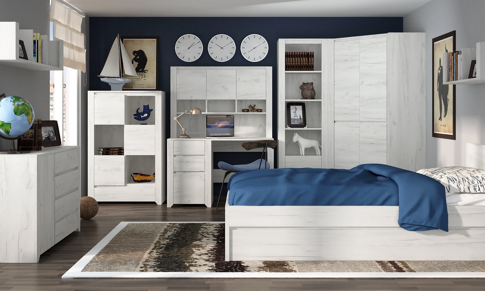 Nábytok Angel je kombináciou jemnosti a elegancie. Prvky sú dostupné vo farbe dub angel. Vďaka neutrálnej farbe skvele zapadne do každého interiéru. Z veľkej ponuky prvkov si ľahko vyskladáte detskú, alebo študentkú izbu podľa vašich predstáv. Komody a skrine Angel vám ponúknu veľké množstvo úložného priestoru. Korpusy a predné plochy sú vyrobené z laminovaných dosiek so zvýšenou odolnosťou voči teplu, vlhkosti a poškrabaniu.