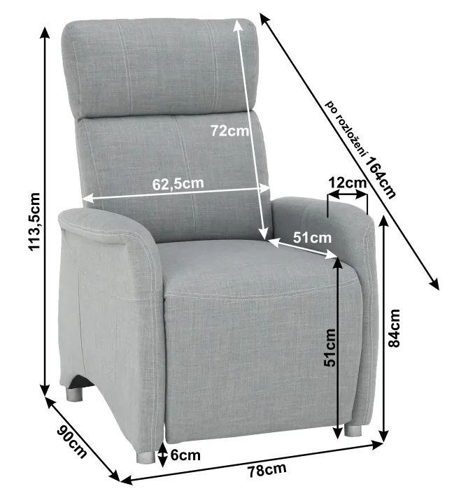 Relaxačné kreslo Forest v elegantnej svetlosivej farbe s manuálnym polohovaním. Dodávané v demonte. Rozmery: 78 x 90 x 113,5 cm(š.h.v)