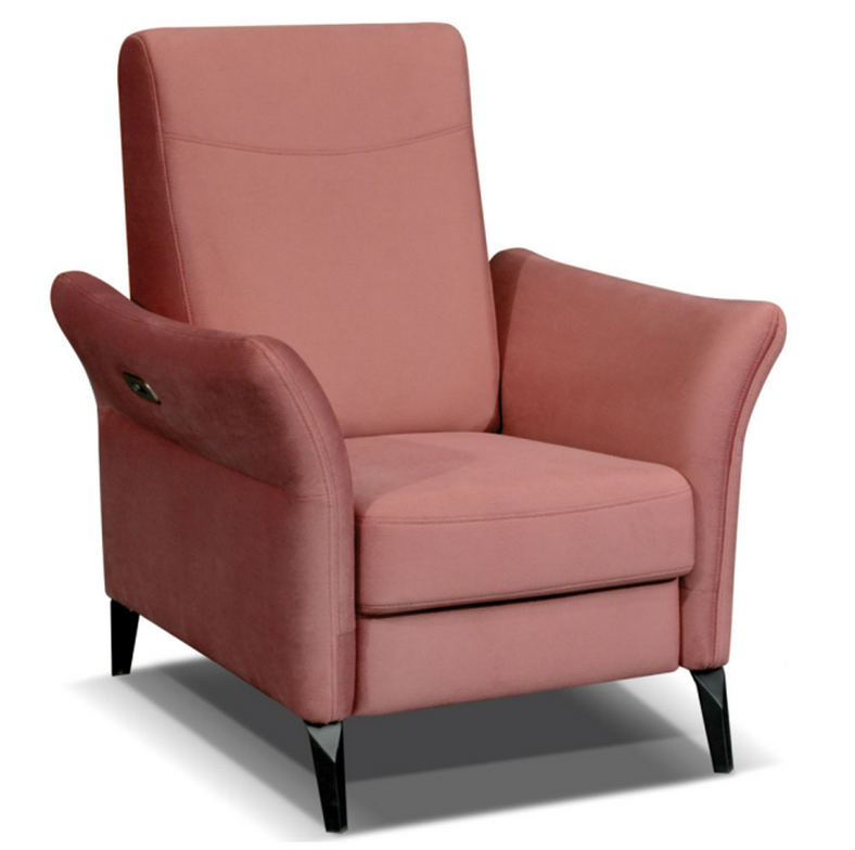 Moderné polohovateľné relaxačné kreslo Riva s elegantnými čiernymi nožičkami. Kreslo má relaxačnú funkciu na elektrické ovládanie, ktorá umožňuje vyklopenie sedacej časti a chrbtovej opierky do relaxačnej polohy. Veľký výber poťahových látok vám umožňuje prispôsobiť si vzhľad kresla podľa svojich predstáv.