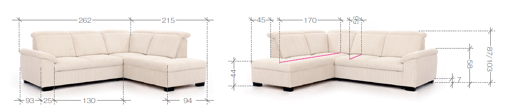 Celkový rozmer: 262 x 215 x 87-103 cm