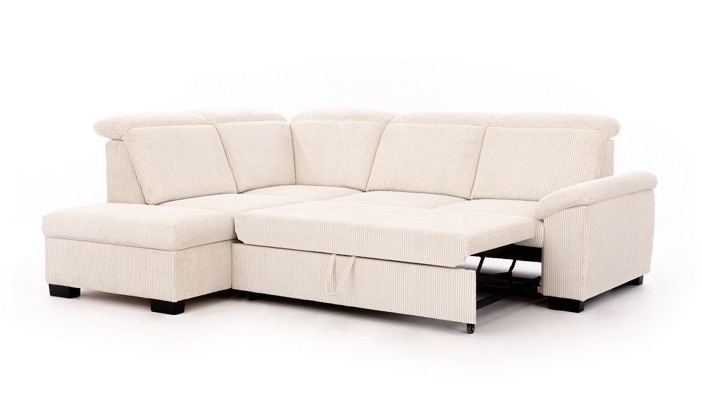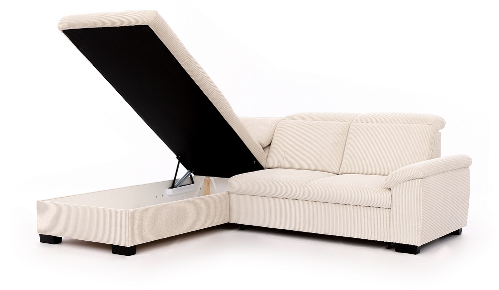 Moderná rozkladacia sedacia súprava Carboni s úložným priestoromSedacia súprava má nastaviteľné opierky hlavy pre vaše maximálne pohodlie. Elegantné nožičky sú dostupné vo farbe čierna, výška nožičiek je 7 cm. Sedacia súprava je dostupná v ľavom, aj v pravom prevedení. Úložný priestor poskytuje dostatočné miesto pre vaše veci. Po rozložení sedačky vznikne plocha na spanie 124 x 185 cm, ktorá výborne poslúži na občasné spanie. Sedacia súprava je čalúnená aj zo zadnej časti, čo ju umožňuje umiestniť aj v priestore. Výber poťahových látok je samozrejmosťou a sedačku si môžete prispôsobiť podľa vašich predstáv.