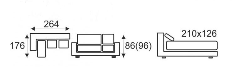 Celkový rozmer: | 264 x 176 x 86-96 cm | ||