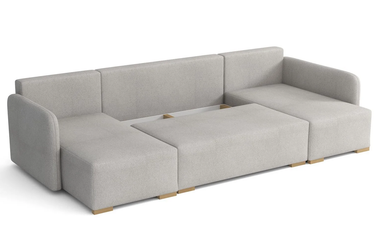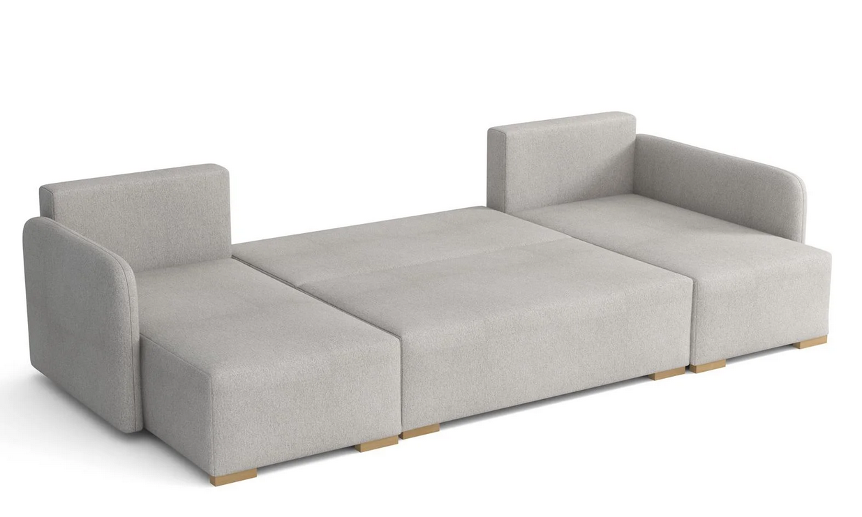 Moderná sedacia súprava Como v tvare U v minimalistickom štýle vhodná do menších priestorov. Sedacia súprava je rozkladacia, po rozložení vznikne plocha na spanie 130 x 275 cm. Veľký úložný priestor poslúži na uloženie vašich vecí.