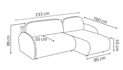 Moderná sedacia súprava Dream s oblými tvarmi v minimalistickom štýle vhodná do menších priestorov. Sedacia súprava je rozkladacia, po rozložení vznikne plocha na spanie 140 x 215 cm. Veľký úložný priestor poslúži na uloženie vašich vecí. Sedacia súprava je univerzálna, je možné ju použiť na pravú aj ľavú stranu.