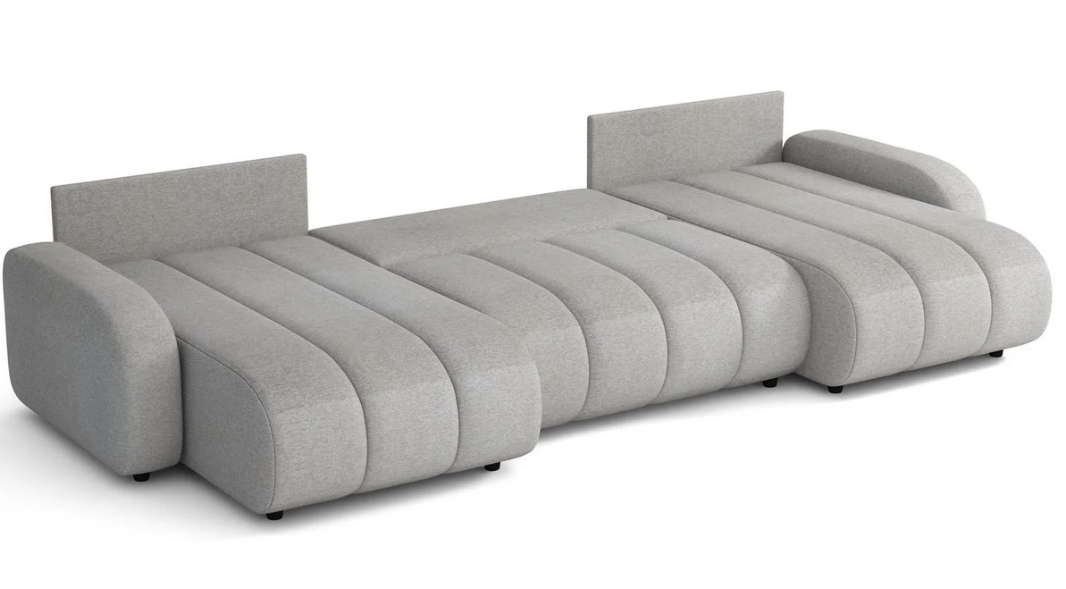 Moderná sedacia súprava Hilton v tvare U s jemným dizajnovým prešitím na sedacej časti a oblými tvarmi. Súčasťou sedacej súpravy sú aj vankúše. Sedacia súprava je rozkladacia, po rozložení vznikne plocha na spanie 140 x 336 cm. Veľký úložný priestor poslúži na uloženie vašich vecí.
