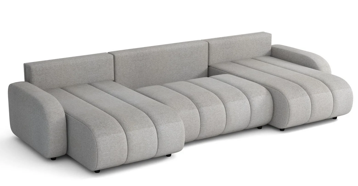 Moderná sedacia súprava Hilton v tvare U s jemným dizajnovým prešitím na sedacej časti a oblými tvarmi. Súčasťou sedacej súpravy sú aj vankúše. Sedacia súprava je rozkladacia, po rozložení vznikne plocha na spanie 140 x 336 cm. Veľký úložný priestor poslúži na uloženie vašich vecí.