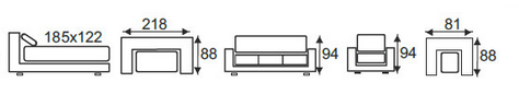 Celkový rozmer: 218 x 88 x 94 cm, 81 x 88 x 94 cm(š.h.v)