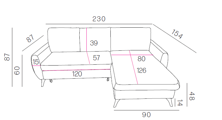 Elegantná moderná sedacia súprava Leni s funkciou rozkladania na spanie a s úložným priestorom vhodná do menších priestorov. Výber poťahových látok je samozrejmosťou a sedačku si môžete prispôsobiť podľa vašich predstáv. Sedačku je možné objednať s kovovými, alebo drevenými nožičkami, výška nožičiek je 14 cm. Drevené nožičky sú dostupné v piatich farbách - biela, orech, wenge, čierna a buk, kovové v dvoch farbách - čierna a chróm.