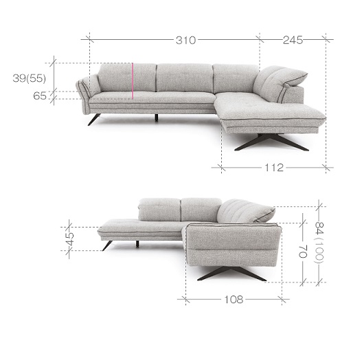 Atraktívna rohová sedacia súprava Marbella s vysokými dizajnovými nožičkami s unikátnym tvarom. Je to elegantný kus nábytku s jedinečným dizajnom s nastaviteľnými opierkami na ruky a nastaviteľnými chrbtovými opierkami, ktoré vám umožnujú prispôsobiť si sedenie podľa vašich potrieb, čo prináša ten pravý komfort. Výška sedu je 45 cm. Veľký výber poťahových látok vám poskytuje možnosť si prispôsobiť vzhľad sedacej súpravy podľa vašich predstáv. Samozrejmosťou je výber ľavého a pravého prevedenia. Možnosť výberu farby nožičiek- chrómové a čierne.