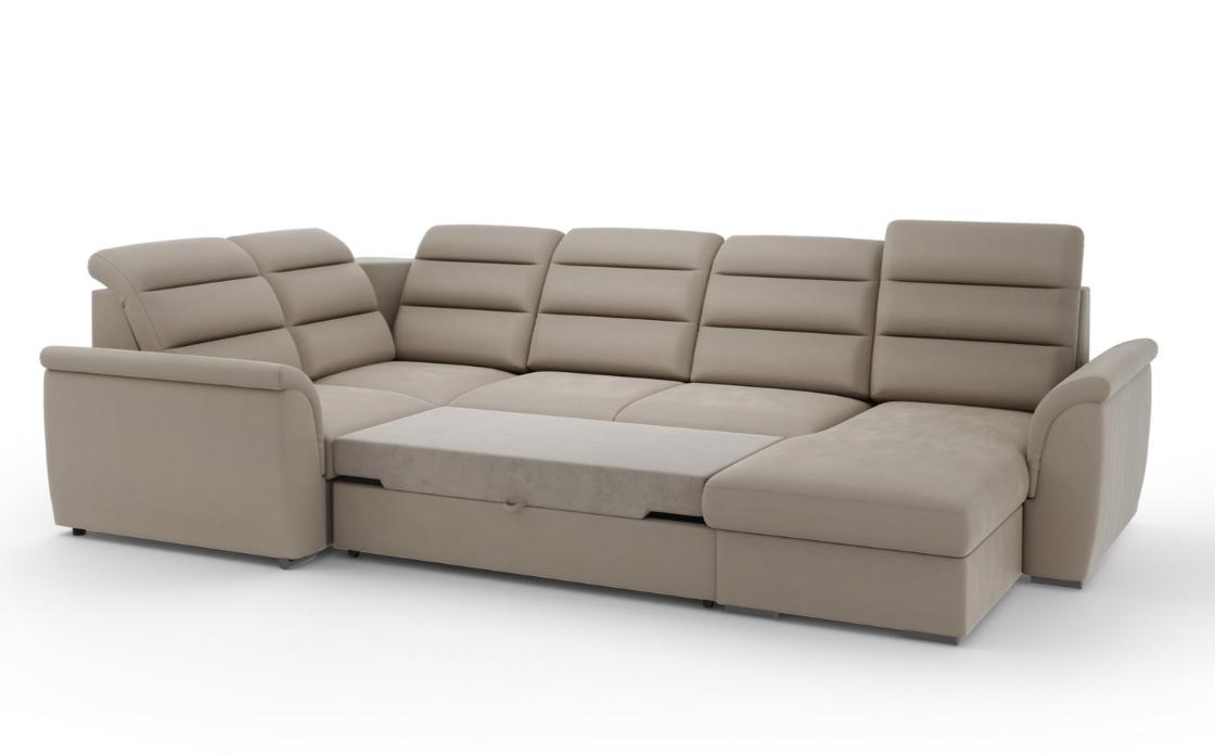Moderná rohová sedacia súprava Mediolan v tvare U je vybavená dvomi úložnými priestormi aj rozkladaním. Úložný priestor poskytne dostatok miesta pre uloženie vašich vecí. Sedačka Mediolan má nastaviteľné opierky hlavy pre vaše maximálne pohodlie. Výber poťahových látok vám poskytuje možnosť si prispôsobiť vzhľad sedacej súpravy podľa vašich predstáv. Samozrejmosťou je aj výber pravého a ľavého prevedenia. Sedaciu súpravu je možné doplniť o kreslo, taburetku, alebo dvojsed. Sedacia súprava má elegantné chrómové nohy. Sedačka je celočalúnená, preto je možné umiestniť ju voľne do priestoru.