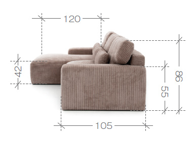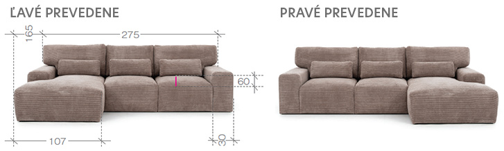 Pohodlná rohová sedacia súprava Milazzo so širokou sedacou časťou a otomanom. Samozrejmosťou je výber poťahovej látky a pravého a ľavého prevedenia. Sedacia súprava je čalúnená aj zo zadnej časti, preto je možné umiestniť ju do priestoru.