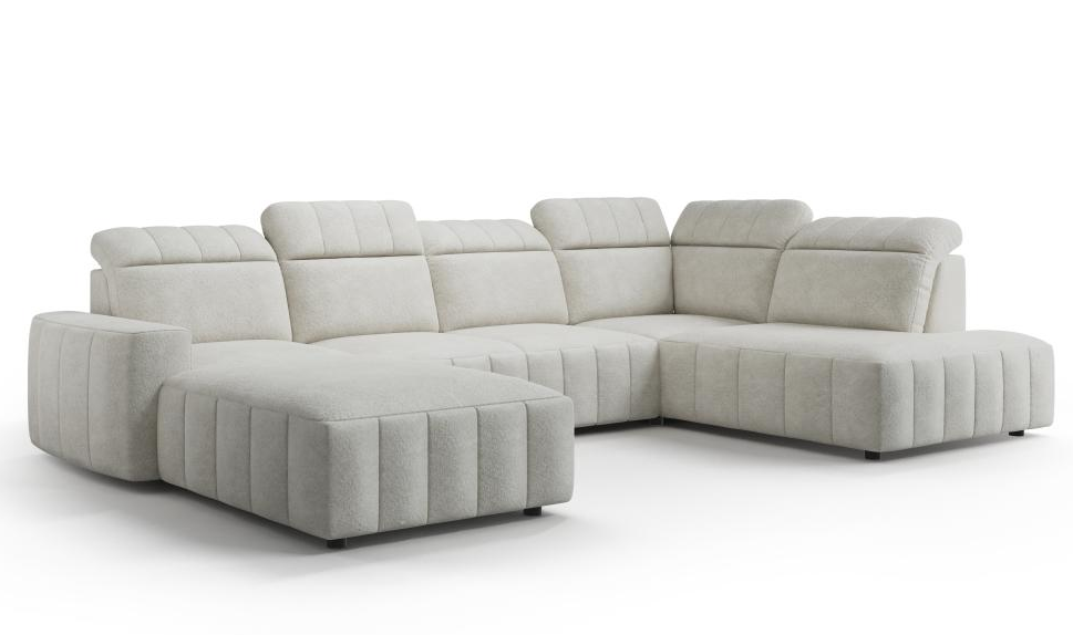 Elegantná sedacia súprava Montreal v tvare U s dizajnovým prešívaním. Je vybavená úložným priestorom a rozkladaním. Po rozložení sedacej súpravy vznikne plocha na spanie 150 x 268 cm. Úložný priestor poskytne dostatok miesta na uloženie vašich vecí. Sedacia časť je vyrobená z kvalitnej HR peny v kombinácii s vlnitou pružinou, ktorá je zárukou trvácnosti a komfortného sedenia. Má polohovateľné pre vaše maximálne pohodlie. Veľký výber poťahových látok vám poskytuje možnosť si prispôsobiť vzhľad sedacej súpravy podľa vašich predstáv.