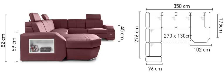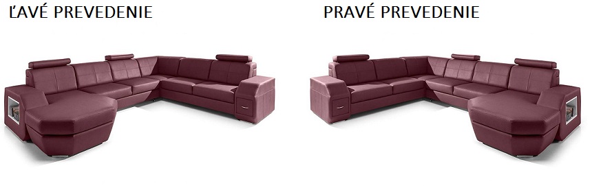 Sedacia súprava Napoli v tvare U má polohovateľné opierky na hlavu, funkciu rozkladania na spanie, otvorenú policu a zásuvku na boku v opierke na ruky. Samozrejmosťou je výber poťahovej látky a pravého a ľavého prevedenia. Sedacia súprava je čalúnená aj zo zadnej časti, preto je možné umiestniť ju do priestoru.