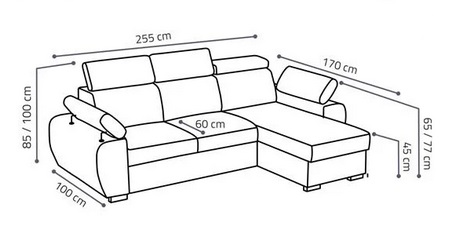 Celkový rozmer: 255 x 170 x 85-100 cm