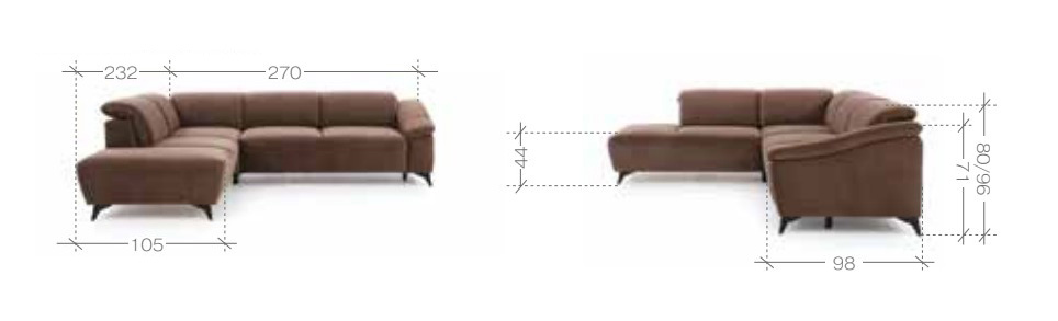 Elegantná sedacia súprava Potenza s funkciou rozkladania a s úložným priestorom. Vyznačuje sa nielen moderným dizajnom a minimalizmom, ale aj vysokou kvalitou a dôkladným vypracovaním. Sedacia súprava má nastaviteľné opierky hlavy pre vaše maximálne pohodlie. Kvalitné kovové nožičky zvýrazňujú jej moderný vzhľad. Sedacia súprava je dostupná v ľavom, aj v pravom prevedení. Úložný priestor poskytuje dostatočné miesto pre vaše veci. Po rozložení sedačky vznikne plocha na spanie 135 x 205 cm, ktorá výborne poslúži na občasné spanie. Sedacia súprava je čalúnená aj zo zadnej časti, čo ju umožňuje umiestniť aj v priestore. Výber poťahových látok je samozrejmosťou a sedačku si môžete prispôsobiť podľa vašich predstáv.