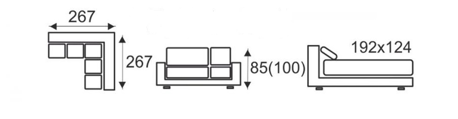 Celkový rozmer: 267 x 267 x 85-100 cm