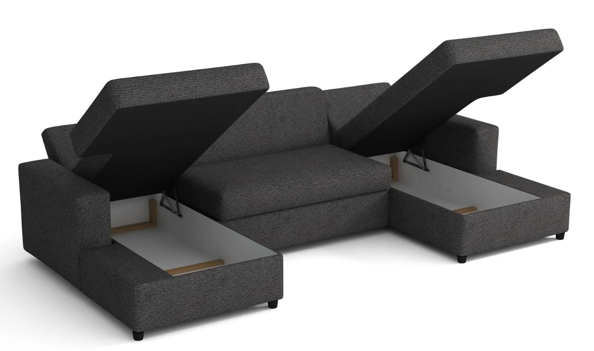 Moderná sedacia súprava Sofia v tvare U v minimalistickom štýle vhodná do menších priestorov. Sedacia súprava je rozkladacia, po rozložení vznikne plocha na spanie 140 x 260 cm. Dva veľké úložné priestory poslúžia na uloženie vašich vecí.