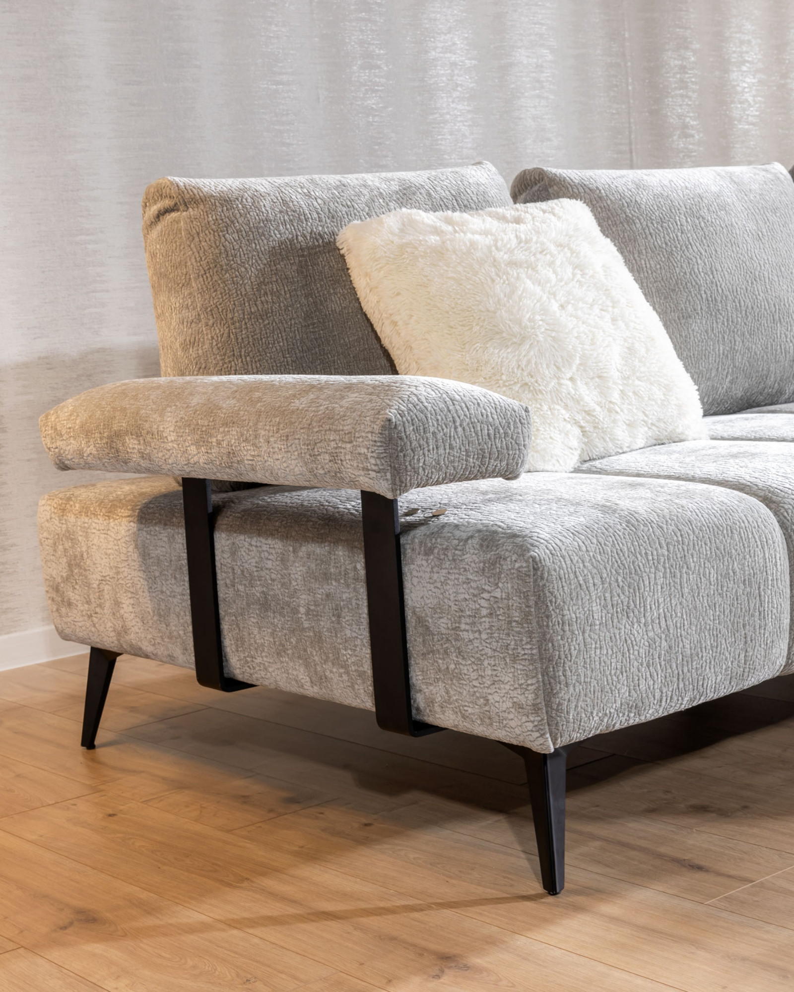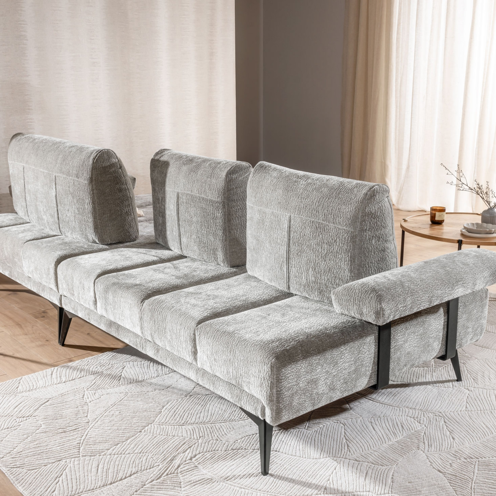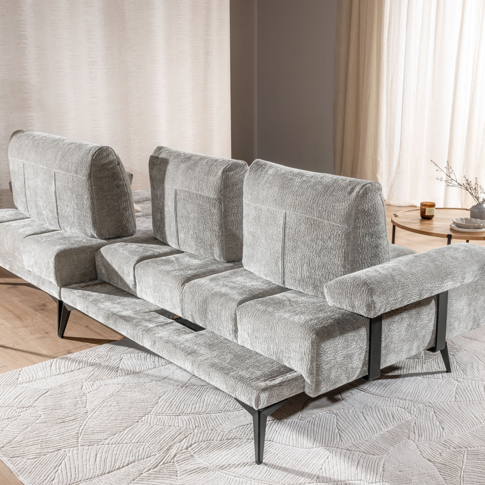 Sedacia súprava Vincenzo predstavuje elegantné spojenie moderného dizajnu a funkčnosti. Výsuvná sedacia časť s elektrickou funkciou a posuvné chrbtové opierky zaručujú nielen pohodlné sedenie,ale aj maximálnu relaxáciu. Vysoké dizajnové nožičky v čiernej farbe, čierny kovové doplnky na opierkach na ruky a elegantné prešívanie dodávajú sedačke osobitý štýl. Praktickou vlastnosťou je aj to, že sa pod ňu hravo zmestí robotický vysávač, čo vám uľahčí upratovanie. Samozrejmosťou je výber poťahovej látky a pravého a ľavého prevedenia. Sedacia súprava je čalúnená aj zo zadnej časti, preto je možné umiestniť ju do priestoru.